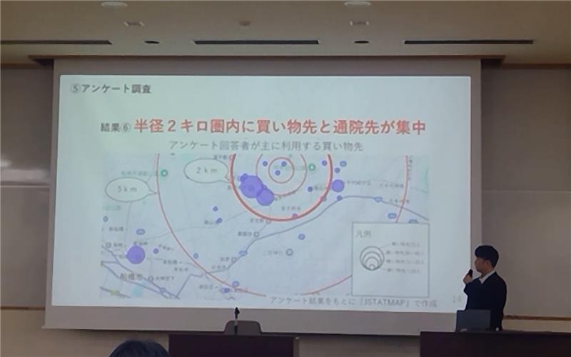 11月28日(金)に第60回生徒地理研究発表大会が開催され、本同好会2年生の武安輝一郎くんが参加し、『船橋市松が丘地区における公共交通不便地域の実態と交通システムの提言について』という研究テーマを発表しました。高齢化と人手不足による路線バスの減便や廃線が深刻な社会問題となっている昨今、大変興味深い内容でした。