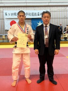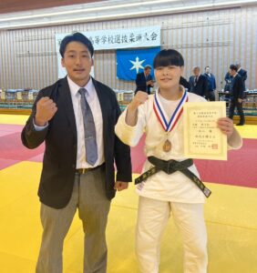 高校柔道界での関東地区は「日本一レベルが高い」と言われていますので、「関東大会2階級制覇」は本人達と部員に大きな自信を与えてくれました。女子57kg級の坂入も我慢強く強豪選手に競り勝ち堂々の関東大会第3位となりました。