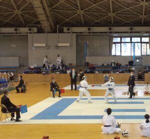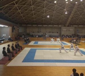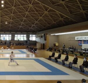 令和2年11月7・8日(土・日)に千葉県総合スポーツセンターにおいて、千葉県高等学校新人体育大会空手道大会が行われました。コロナ感染対策として、入館時の検温&健康チェックシートの提出、審判はマスクにフェイスシールド着用、選手はメンホーにマウスシールド(メンホー用)を装着し気合い有りでの試合となりました。