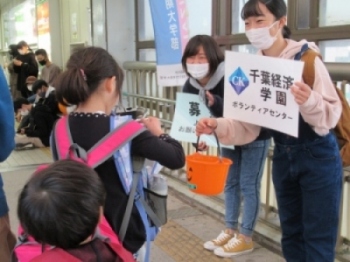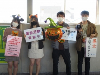 10月24日(土)、31日(土)の2日間、「千葉経済学園ボランティアセンター」では、7月に九州地方を襲った豪雨災害及び台風10号で被害を受けられた皆様の支援になればとの思いから、8月の2日間で実施したのに引き続き、本学と相互連携協定を結んでいる千葉都市モノレール社の都賀駅と千城台駅にて、募金活動を行いました。