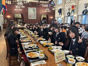 2日目は、楽しみにしていたスコーン作りです。準備から片付けまでの指示を英語で聞き、スコーンを焼きました。美味しくできあがったスコーンは、みんなで食べ、残りは家族へのお土産にしました。生徒たちは、外国人スタッフや仲間たちと英語を通して楽しく交流することができました。