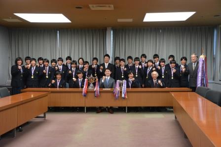 全国高校女子ソフトボール選抜大会で初優勝を果たした選手たちが、 4月21日熊谷千葉市長を表敬訪問し、市長から祝福を受けました。
