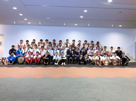 当日は、平成30年度高校総体(インターハイ)において優秀な成績を修め、千葉県私学の名声を高めることとなった選手、東京オリンピックちばジュニア特別強化指定選手に選ばれて今後の活躍が期待される高校生が、熱気溢れる満席の会場の中で晴れやかに顕彰されました。 本校からは、高校総体で優勝を果たした柔道部皆川大記君と、東京オリンピックちばジュニア特別強化指定選手として選ばれた女子ソフトボール部の笠原朱里さんが列席し、来賓の森田県知事から選手を讃える嬉しいお祝いの言葉をいただきました。